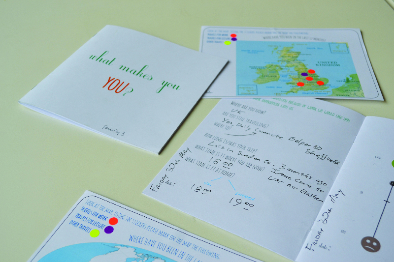 The cultural probes were developed by the Helen Hamlyn Centre for Design at the Royal College of Art in collaboration with Open Lab at Newcastle University, as part of the Family Rituals 2.0 project funded by the EPSRC.